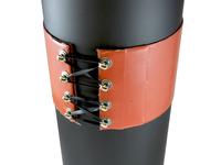 The wire wound element consists of high temperature resistance wire wound around a fiberglass core for added support and flexibility while still allowing for expansion and contraction during heat up and cool down. The element is laid out in a computer designed pattern to provide maximum heat transfer and temperature uniformity. After the element is laid out, it is vulcanized between two sheets of silicone rubber until they become one. The silicone rubber sheets also have a layer of fiberglass for added strength and tear resistance. The same vulcanization process is used to attach the power leads and cord sets to the heater windings.